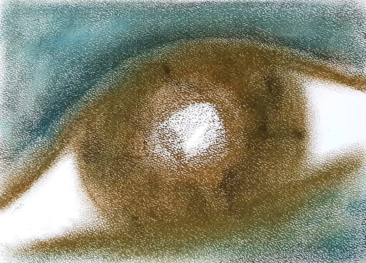 This painting is a raw, textured close-up of an eye, capturing a moment of profound vulnerability. The overall heavy texture and muted colors reflect the internal static and the overwhelming noise of the world. It was inspired by seeing the look in the eye of someone who was utterly lost, yet desperately seeking a sparkle of hope to survive. The stark, brilliant white light in the pupil is that defiant spark—the soul’s refusal to be extinguished amidst the chaos.